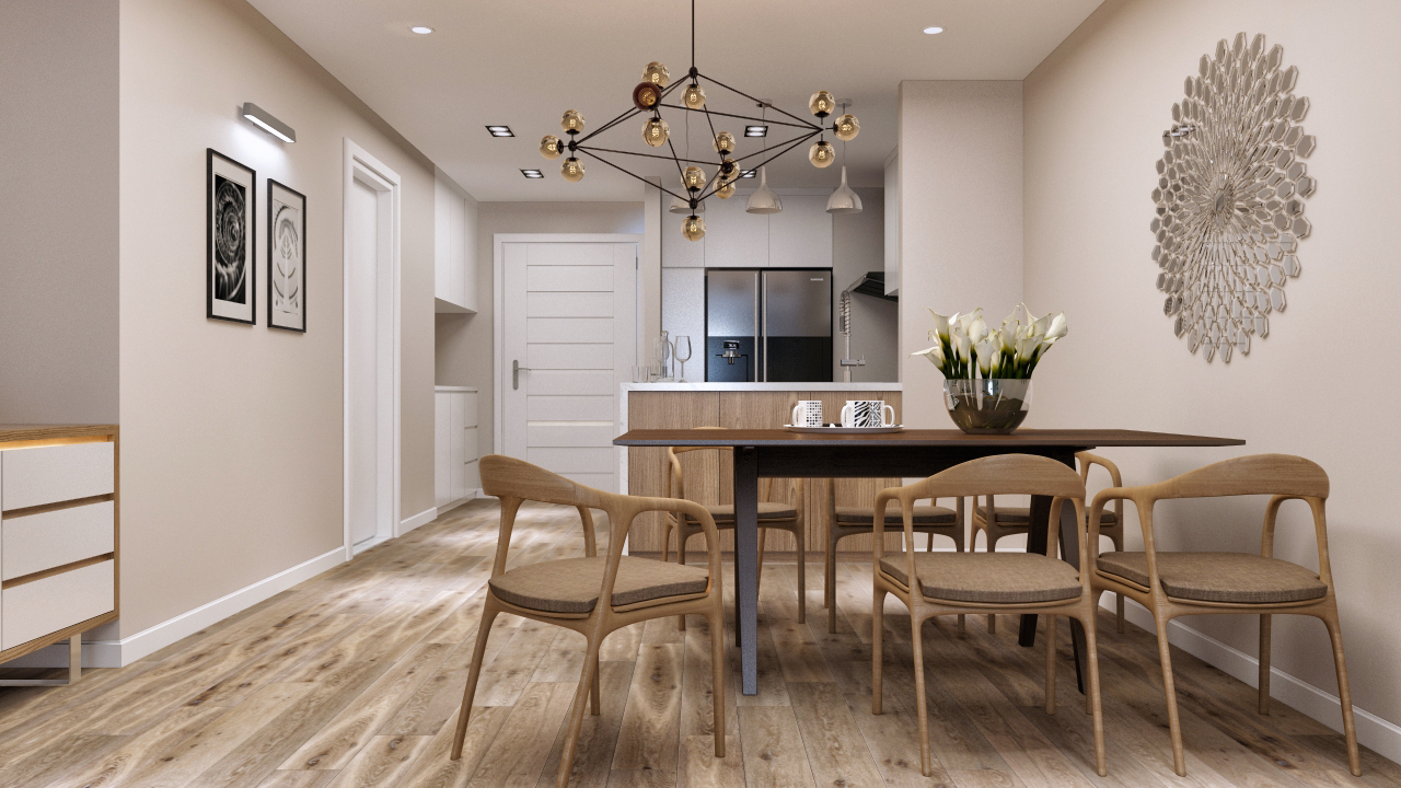 Ngày nay việc thiết kế nội thất chung cư cũng rất được quan tâm để có một không gian sống hiện đại và đầy đủ tiện nghi. Bên cạnh phòng khách và phòng ngủ thì nội thất phòng ăn cũng được chú trọng về mặt thiết kế trong không gian này không thể không có một bộ bàn ghế ăn đẹp mắt và sang trọng.